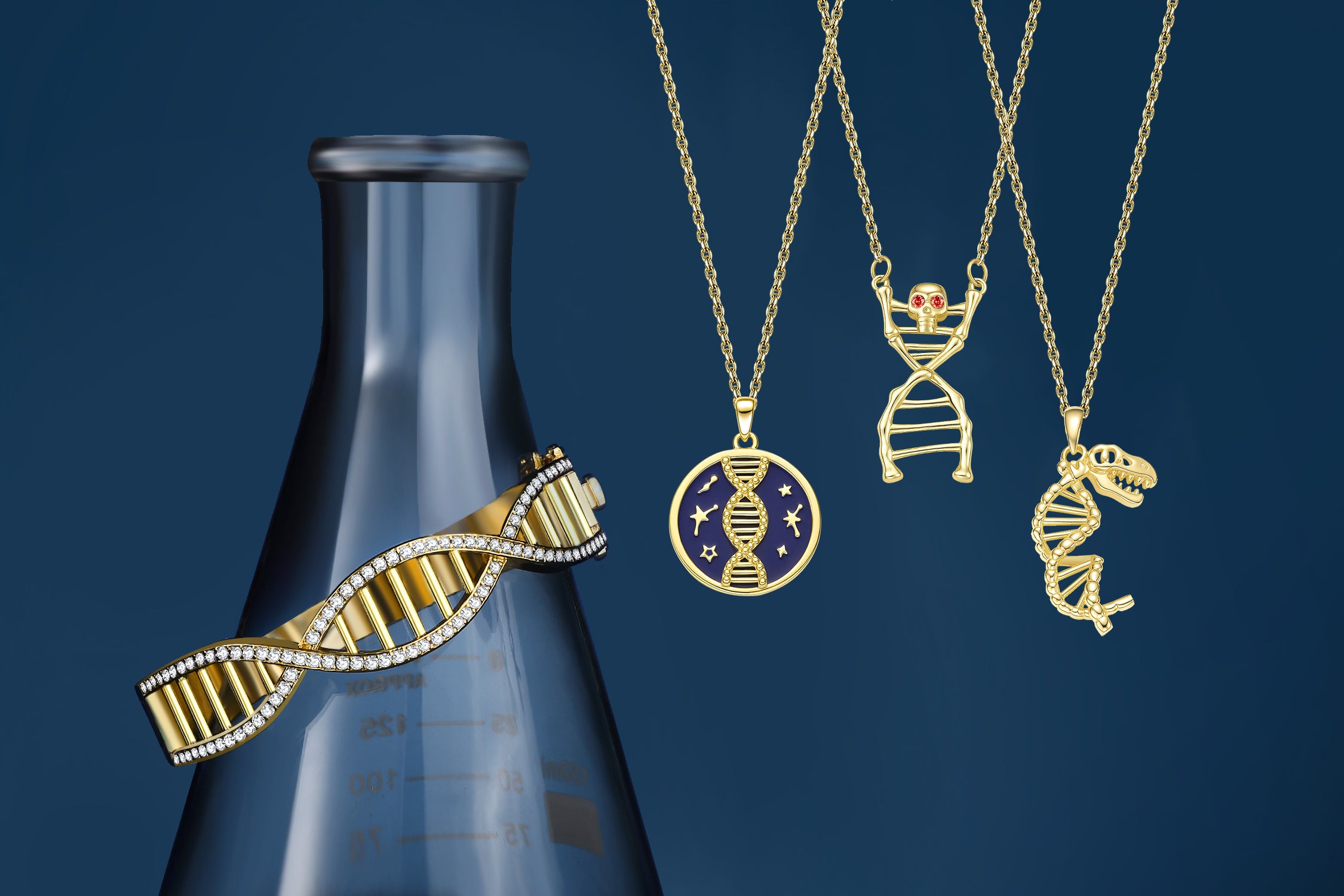Unwind the beauty of life’s blueprint—this necklace weaves the iconic DNA double helix with delicate vine twists, blending scientific charm and romantic grace.