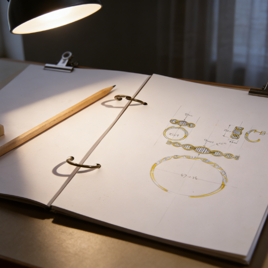 En 2017, cette conviction partagée a donné naissance à Envyou. Il s'agissait d'une démarche philosophique, non d'une entreprise commerciale. Ils ont commencé à traduire ces intuitions en objets à porter : un collier en forme de spirale primordiale, une bague gravée d'un code génétique, un bracelet structuré comme une liaison moléculaire.
